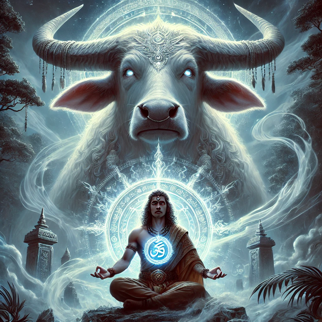 Perwujudan Sang Khodam Agung Berjubah Hijau Tua, Bersorban Putih Besar Yang Berkilauan, Membawa Tongkat Bercahaya, Lambang Ilmu Dan Kekuasaan Langit. Wajahnya Tidak Dapat Dilihat Secara Utuh, Karena Tertutupi Nur Keemasan Yang Menyilaukan Pandangan, Sebagai Simbol Maqam Ruhani Yang Amat Tinggi.